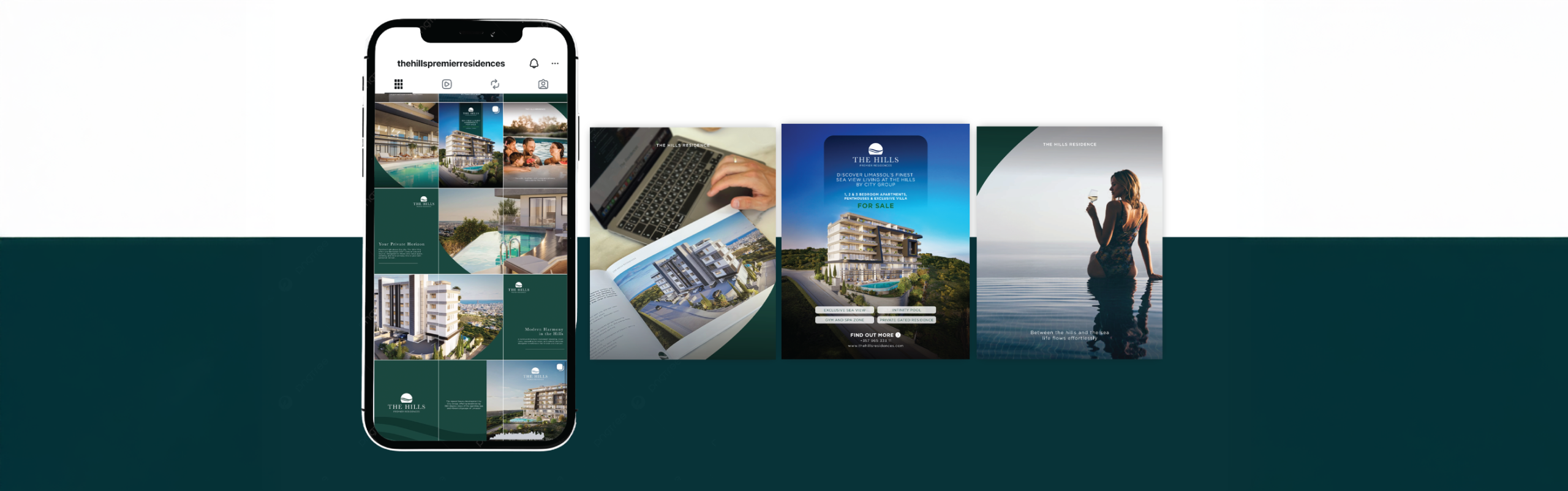 The Hills Residences entered Limassol’s competitive luxury real estate market with no existing brand presence. White Socks Creative built a complete brand ecosystem from the ground up, positioning the project as a premium lifestyle destination.